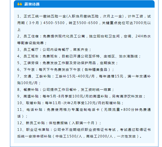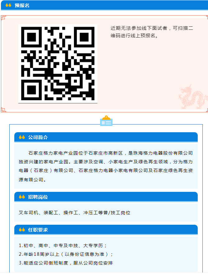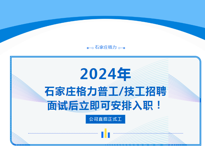 五险一金+各项福利!正式工!2024年石家庄格力公开招聘