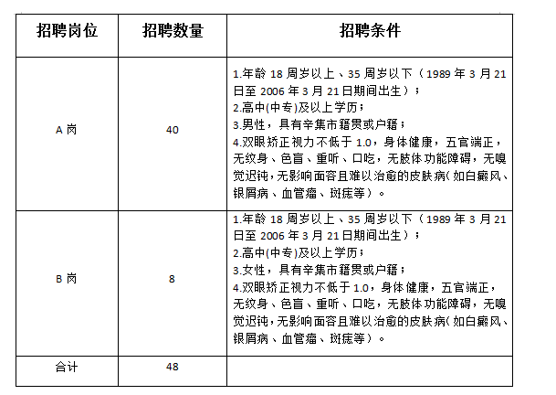 根据工作需要,现为辛集市公安局面向社会公开招聘48名公安机关警务辅助人员,现将有关事项公告如下:
