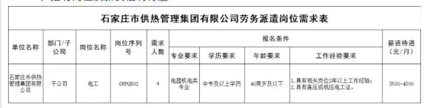 石家庄市供热管理集团有限公司劳务派遣制人员招聘4人公告