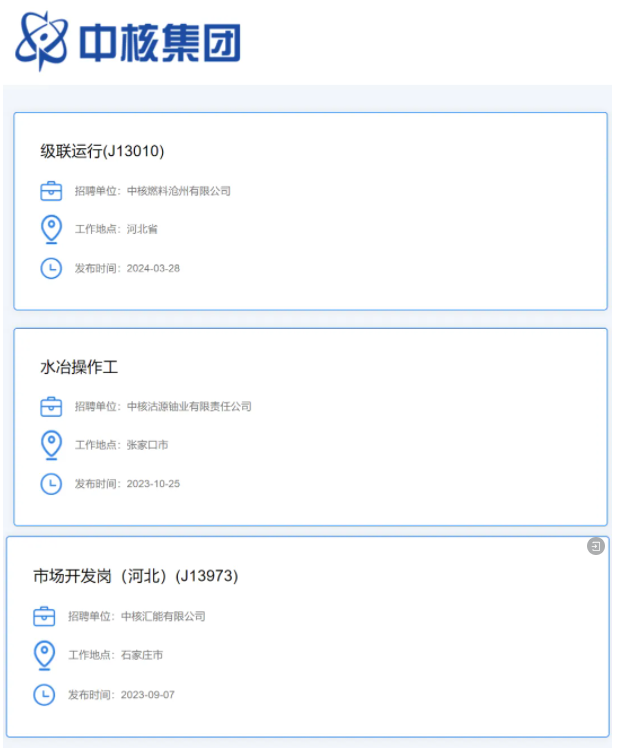 大型央企 | 中核集团河北地区2024年招聘岗位发布