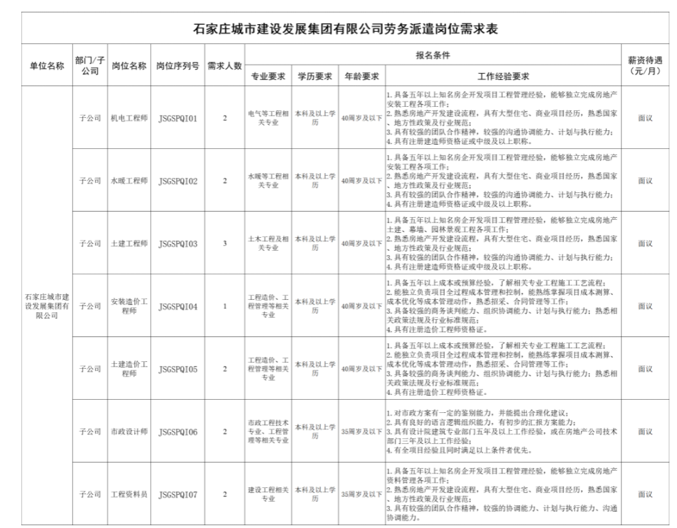 根据工作需要,石家庄城市建设发展集团有限公司特委托石家庄市国经人力资源管理有限公司面向社会公开招聘劳务派遣制人员14名。现将具体招聘流程设定如下: