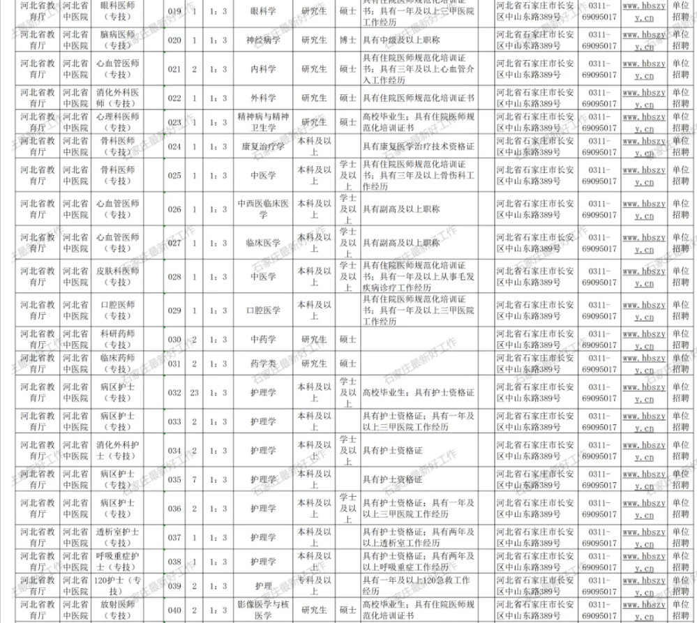 政策咨询电话:0311-69095017(河北省中医院人力资源部)