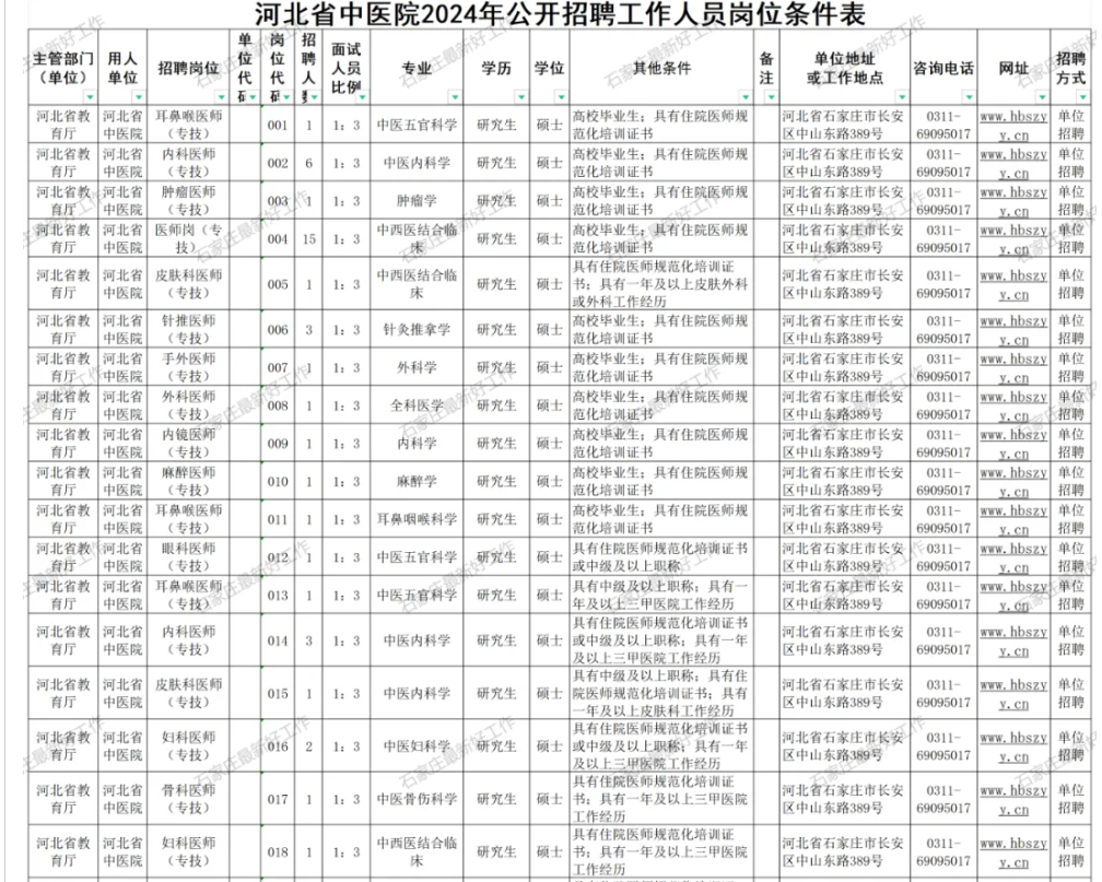 1.《河北省中医院2024年公开招聘工作人员岗位条件表》.xls