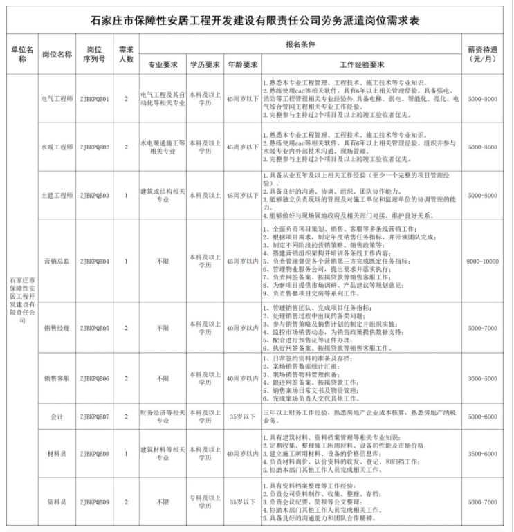 石家庄市保障性安居工程开发建设有限责任公司招聘15人公告