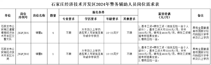 石家庄经济技术开发区2024年警务辅助人员公开招聘7人公告