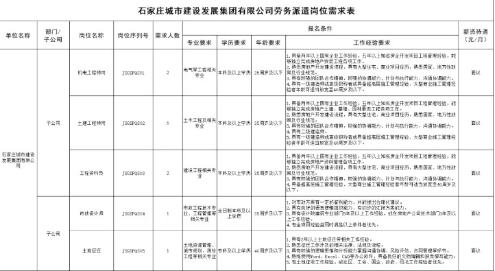 根据工作需要,石家庄城市建设发展集团有限公司特委托石家庄市国经人力资源管理有限公司面向社会公开招聘劳务派遣制人员11名。现将具体招聘流程设定如下: